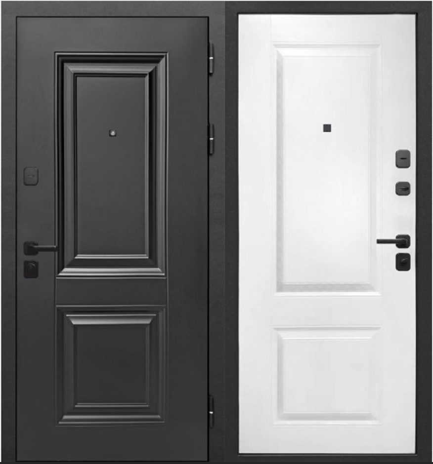 ВХОДНАЯ МЕТАЛЛИЧЕСКАЯ ДВЕРЬ «9см Муар Черный 2 Квадрата» Белый клен/Каштан