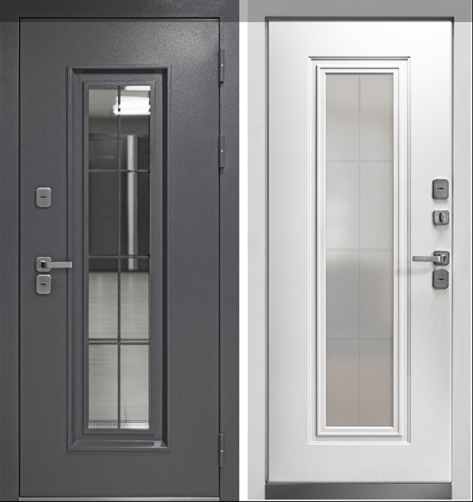ВХОДНАЯ ДВЕРЬ С ТЕРМОРАЗРЫВОМ ЛЮКСОР ТЕРМО 4 БУКЛЕ ГРАФИТ / ЭМАЛИТ БЕЛЫЙ
